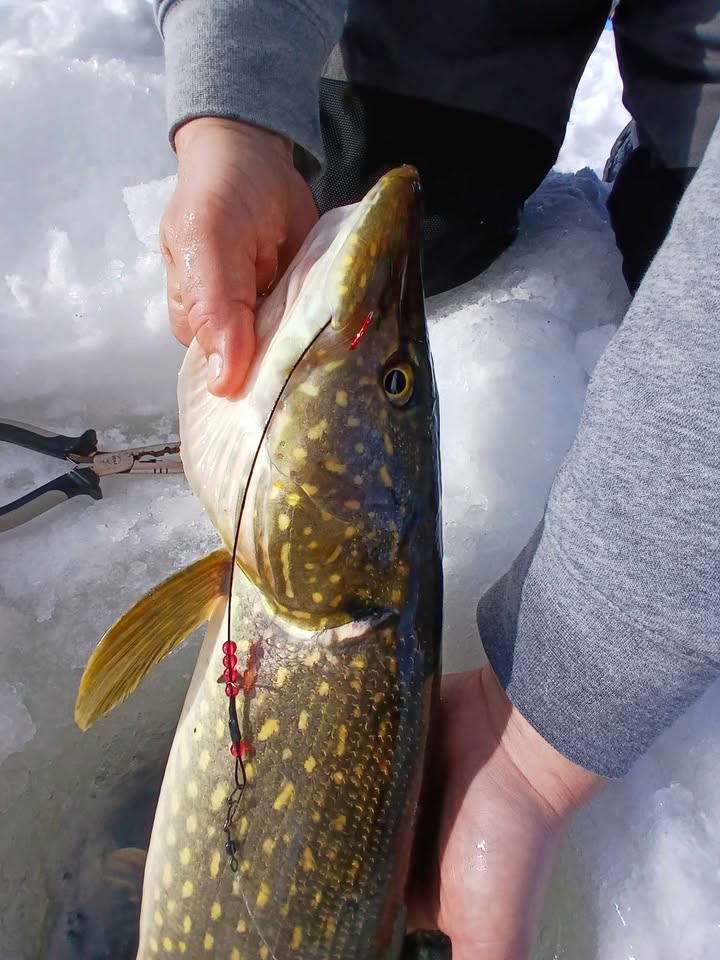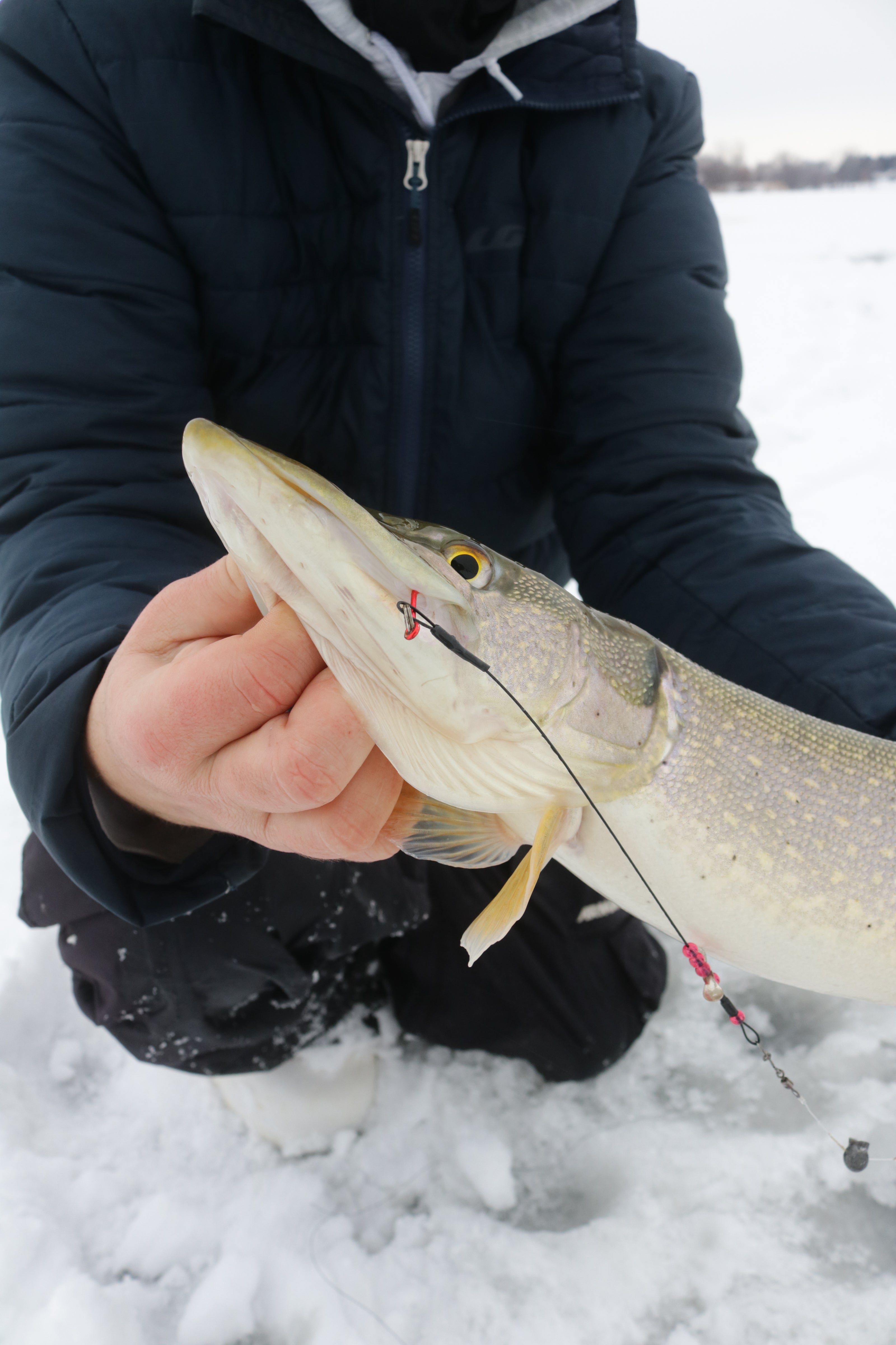 Salut , Mon papa de 74 ans a prit sont premier Pike cette hiver à l’aide de vos hameçon 🪝 , un petit 26 pouces.